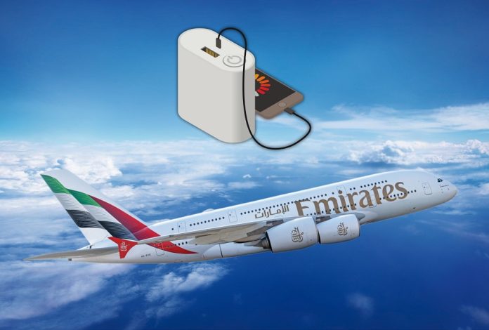 അതേസമയം, എല്ലാ വിമാനങ്ങളിലും മൊബൈൽ, ലാപ്ടോപ് ഉൾപ്പെടെയുള്ള ഇലക്ട്രോണിക്സ് ഉപകരണങ്ങൾ സീറ്റിൽ തന്നെ ചാർജ് ചെയ്യാനുള്ള സൗകര്യം ലഭ്യമാണ്. എങ്കിലും യാത്രക്ക് മുമ്പ് തങ്ങളുടെ ഇലക്ട്രോണിക്സ് ഉപകരണങ്ങൾ പൂർണമായും ചാർജ് ചെയ്തുവെന്ന് ഉറപ്പുവരുത്തണമെന്ന് യാത്രക്കാരോട് എമിറേറ്റ്സ് അധികൃതർ അഭ്യർഥിച്ചു. മറ്റ് ചില എയർലൈനുകളിൽ നേരത്തെ പവർ ബാങ്കുകൾക്ക് നിരോധനം ഏർപ്പെടുത്തിയിട്ടുണ്ട്.