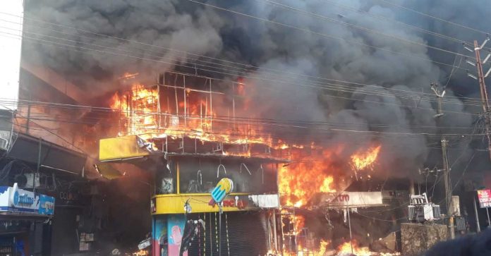 തീപിടിത്തമുണ്ടായ കളിപ്പാട്ട കടയുടെ സമീപത്തെ തുണിക്കടകളിലേക്കും മൊബൈൽ ഫോൺ കടകളിലേക്കും തീപടർന്നു. കടകളിലെ ഗ്യാസ് സിലിണ്ടറുകൾ പൊട്ടിത്തെറിച്ചതാണ് സ്ഥിതി ഗുരുതരമാക്കിയത്. ജില്ലയുടെ വിവിധ ഭാഗങ്ങളിലെ എട്ടു ഫയർഫോഴ്സ് യൂണിറ്റുകൾ സ്ഥലത്തെത്തി തീയണയ്ക്കാനുള്ള തീവ്രശ്രമം തുടരുകയാണ്. തീ സമീപ കെട്ടിടങ്ങളിലേക്ക് പടരുന്നത് ഒഴിവാക്കാനായെന്ന് ജില്ലാ ഫയർ ഓഫീസർ പറഞ്ഞു. തീ ഒരു പരിധി വരെ നിയന്ത്രണ വിധേയമാക്കാനായെന്നും ആദ്യം തീപിടിച്ച കടകളാണ് പൂർണമായും കത്തിയതെന്നും അദ്ദേഹം പറഞ്ഞു.